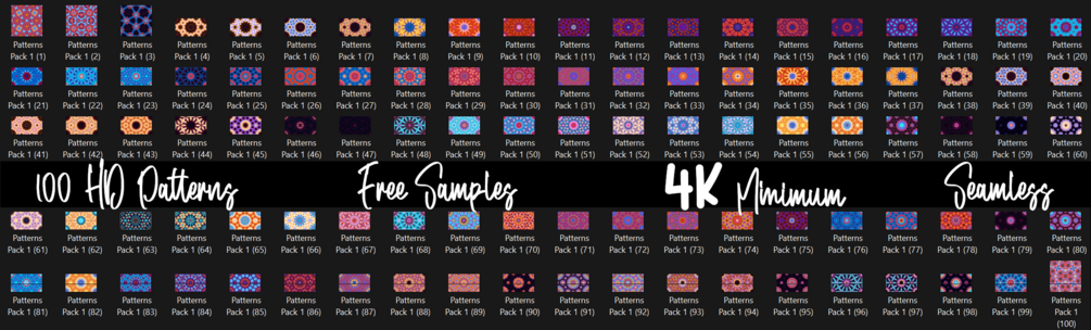 100 high resolution seamless pattern png images and 10 equivalent sample images.